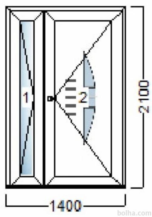 Dvokrilno okno, 6 komor, 2 tesnila, steklo 4-16-4 LOWe 1,3W/m2K OZ