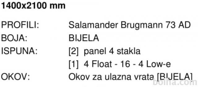 Balkonska vrata dvokrilna, 5 komora, 2 brtve, staklo 4-16-4 LOWe 1,3 W/m2K OZ