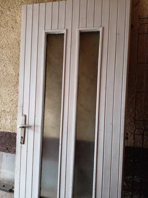 Ena vrata imajo vmes svetlobo in zraven ozek del s svetlobo, mere 81,5x196cm in ozek del 46x196cm, levo odpiranje. Cena za kos 10 eur. Informacije na telefon 031 633 517