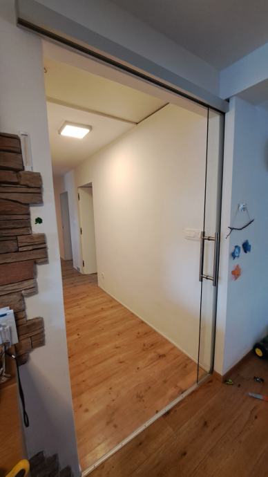 Prodam steklena drsna vrata dim. 122x214 cm, 8mm float kaljeno steklo, brušeni in polirani robovi, metalglas V-5400 drsno okovje, INOX ročaj L=400mm. Vrata so lepo ohranjena, malo rabljena in delujoča. Prodajamo zaradi renovacije. 051443141