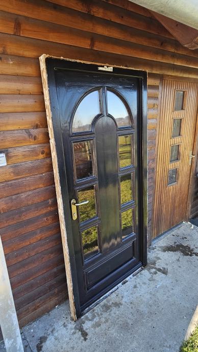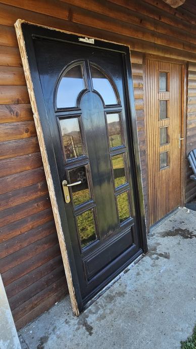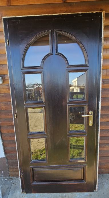 Masivna vhodna vrata. Večtočkovno zaklepanje. Zunanje mere podboja 206 x 100 cm.