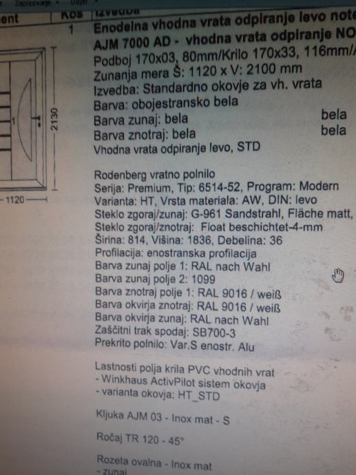 prodam vhodna AJM vrata-krilo, brez podboja. proizvajalec podjetje AJM doo.