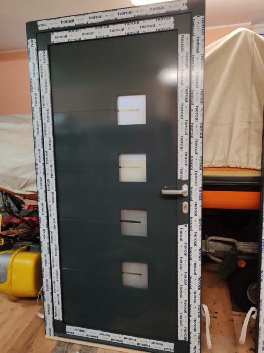 Prodam vhodna vrata Alu, antracid barve RAL 7016, odpiranje noter desno.