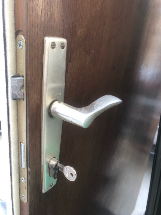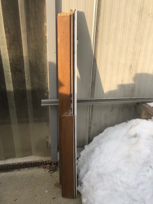 Vhodna vrata so v odličnem stanju . Ključavnica deluje odlično. Okvir skupaj z vrati. Letve samo na sprednji strani. Dimenzije okvirja: 97cm x 199cm, širina okvirja 16cm