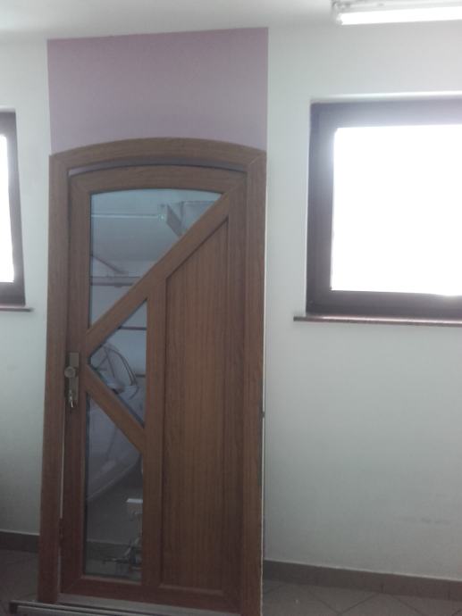 Vhodna vrata so pvc zunanji del je zlati hrast znotraj pa bele. Mere so 100×207