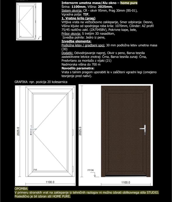 Vrata so se zascitena s folijo - zunanja barva je rjava, notri bela.