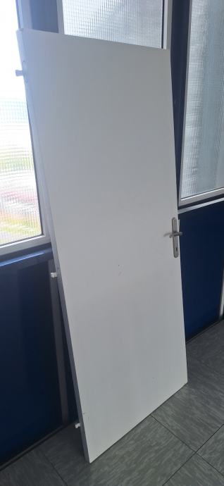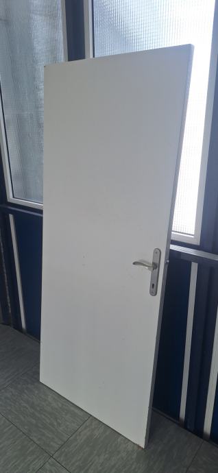 Vratno krilo notranje belo 85x200 s kljuko in ščitom, rabljeno, a v dobrem stanju. Na krilu so trije panti. Desno odpiranje.