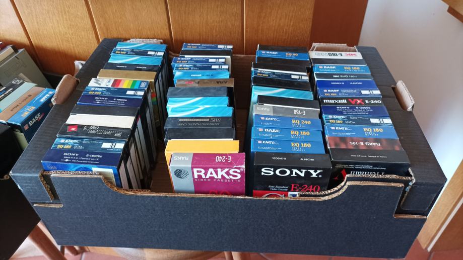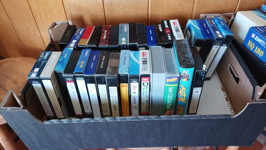 Prodam 150 VHS kaset v treh škatlah. Pretežno so filmi, nekaj je dokumentarcev in risank. Večina je bila posnetih na domačem videorekorderju pred približno 30 leti. Za točne naslove me pokličite, ker bi bi bilo prezamudno, če bi zapisal seznam vseh naslovov. Vse kasete skupaj so 75€.