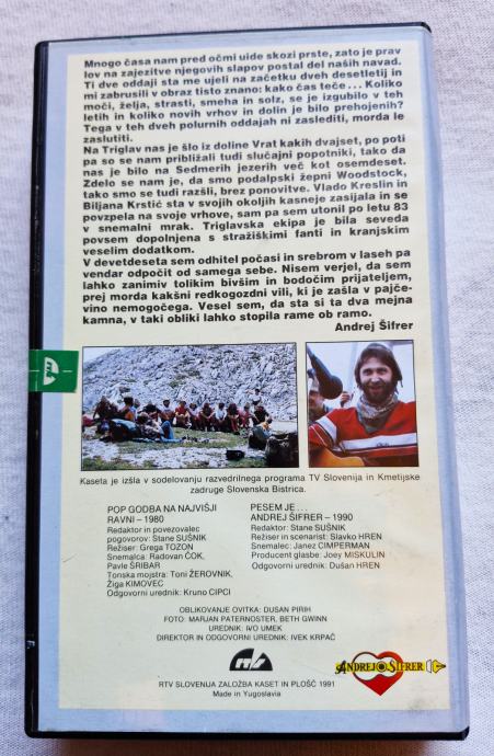 ANDREJ ŠIFRER VHS originalna videokaseta POP GODBA 8€