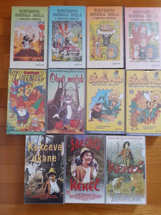 Prodajam risanke in filme na videokasetah. Cena na kaseto je 2 €. Risanke so v angleškem ali slovenskem jeziku.