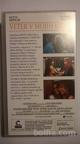 Prodam film na originalni VHS kaseti z naslovom VETER V MOJIH KRILIH org. naslov BEACHES (komedija/drama) z igralkama Bette Midler in Barbaro Hershey.
