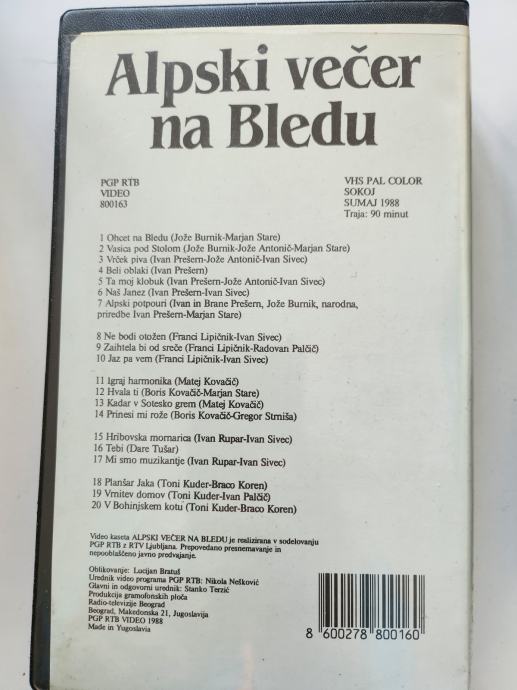 VHS,VIDEOKASETE - LEPA BRENA,MESAM '88,ALPSKI VEČER NA BLEDU