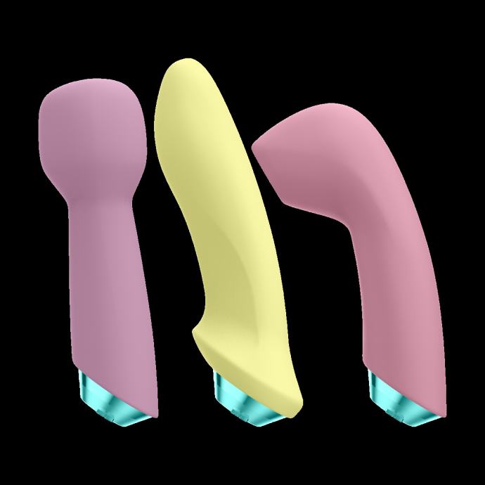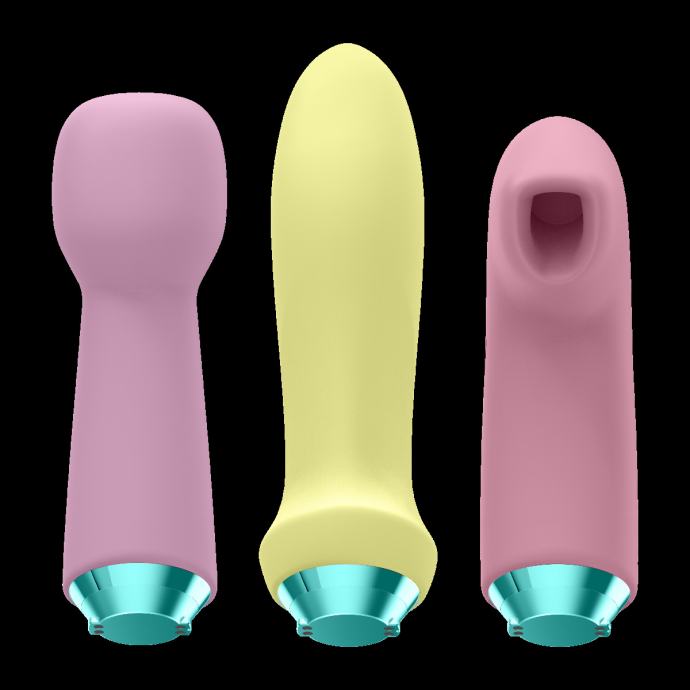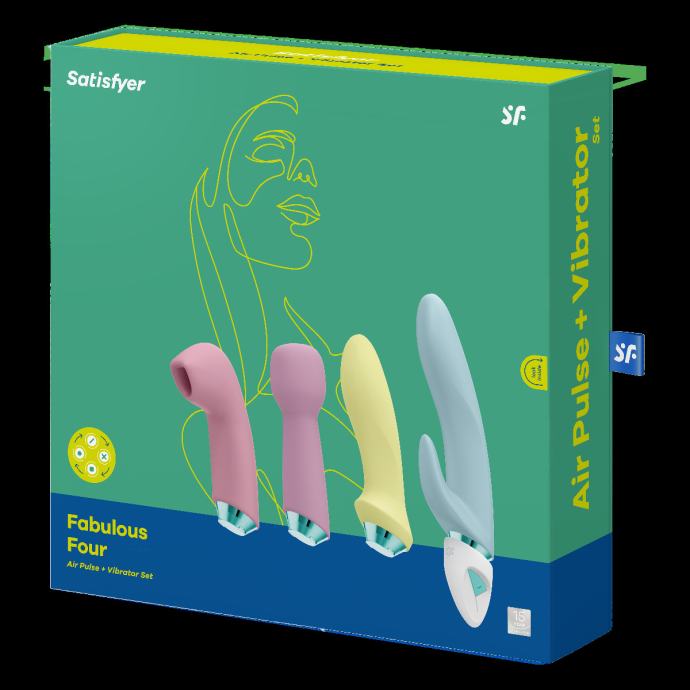 Želite preizkusiti vse vrste erotičnih igračk? Komplet Fabulous Four vam to omogoča! Komplet Fabulous Four vključuje štiri prodajne uspešnice, ki jih lahko v obliki nastavka poljubno menjate glede na razpoloženje. Če si želite klitoralne stimulacije uporabite nastavek za Air Pulse stimulacijo ali masažer, za kombinacijo z notranjo stimulacijo pa rabbit vibrator, za konec pa ostane še nepogrešljiva klasika, vibrator v klasični obliki. Ta luksuzna igračka ponuja različne funkcije vibracij in tlačnih valov (Air Pulse) za vsestransko uporabo. Komplet Fabulous Four vam bo vsak dan ponudil nekaj novega! Komplet Fabolous Four vključuje 4 različne nastavke z bazo. Silikonske igračke je mogoče enostavno namestiti na podlago z 90° Click & Rotate Motion in jih priročno upravljati z gumbi +/- na strani intuitivne nadzorne plošče. Fabulous Four je pripravljen za vsako vaše razpoloženje: s klasičnim vibratorjem tlačnih valov s patentirano tehnologijo Air Pulse lahko uživate v čutnem negativnem tlaku in utripajočih tlačnih valovih, ki spodbujajo vaš biser užitka. Če ste razpoloženi za dvojno stimulacijo, vam priporočamo uporabo rabbit vibratorja: 2 motorja stimulirata vašo G-točko in vaš klitoris z vročimi vibracijami. Ste imeli naporen dan in hrepenite po sprostitvi? Nato pustite, da zaobljena glava masažerja drsi po vaših napetih delih telesa in uživajte v mravljinčastih vibracijah, ki vas takoj sprostijo – idealna je tudi za stimulacijo klitorisa. Analni vibrator je vedno pripravljen na analne avanture: s svojo ukrivljeno, ergonomsko obliko vas stimulativno napolni. Primeren je tudi za stimulacijo G-točke – poskrbite, da je med urami igre temeljito očiščen in razkužen. Lastnosti kompleta: Baza s 4 zamenljivimi nastavki za različne stimulacije Vsestranski pripomoček za vaginalno, klitoralno in analno stimulacijo, obenem pa tudi masažo telesa 12 funkcij vibracij in 11 funkcij tlačnih valov (Air Pulse) Svilnato gladek, telesu varen silikon na igračkah Enostavno krmiljenje med različnimi programi Enostavno menjanje nastavkov s Click & Rotate funkcijo USB napajanje 100% vodoodporen komplet Komplet vključuje: Rabbit nastavek 18 cm (vstavljiva 13 cm) x 3,2 cm (+ 4,5 cm dolžina baze) Vibrator G točke 14, 5 cm x 3,3 cm (+ 4,5 cm dolžina baze) Masažer 14 cm x 4 cm (+ 4,5 cm dolžina baze) Klitoralni (zračni) stimulator 12,5 cm x 5 cm (+ 4,5 cm dolžina baze) Baza z 90° ploščo za menjavo nastavkov 4,5 cm x 4 cm