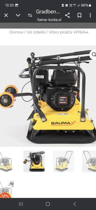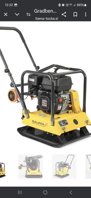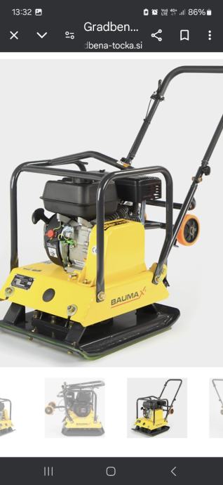 Vibro plošca za utrjevanje terena ima tudi gumo tako da se lahko vibrira neposredno po tlakovcih. Dnevna izposoja je 25€. Možnost izposoje tudi žage na vodni rez.Več info na 051313134.