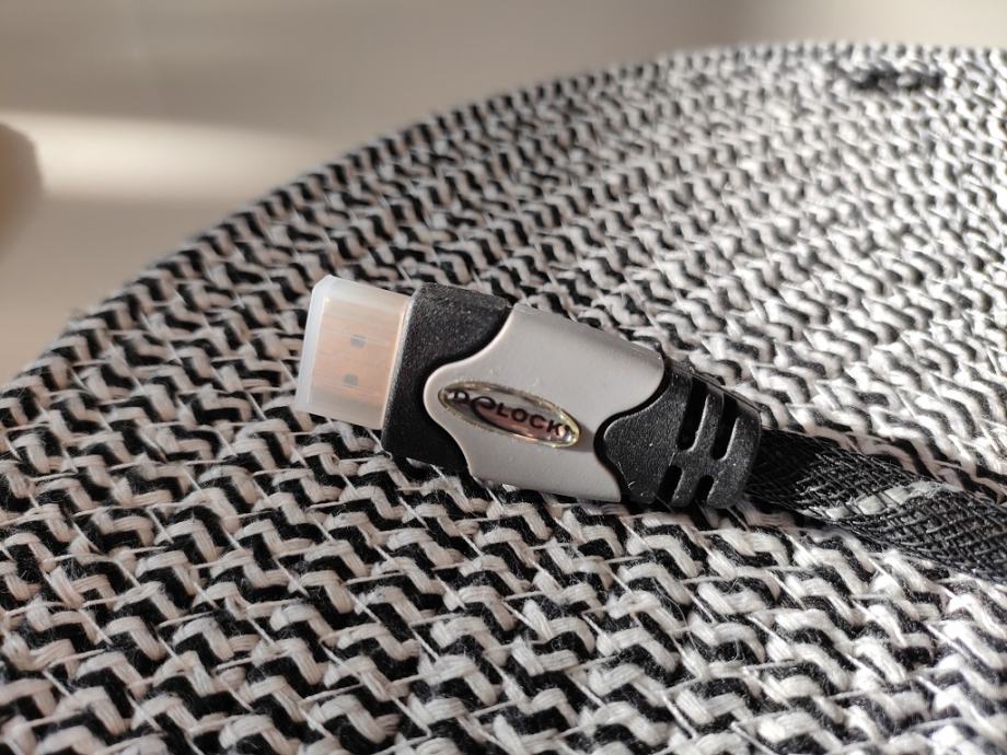 Znamka kabla Delock hdmi 4k, na eni strani kotni priklop.