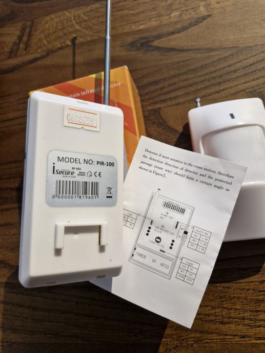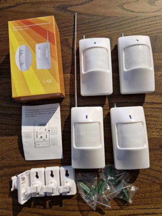 PIR senzorji gibanja (9V baterija) imajo brezžični doseg zaznave do 8 m delujejo na razdalji do 80m od centrale, enako magnetni senzor.