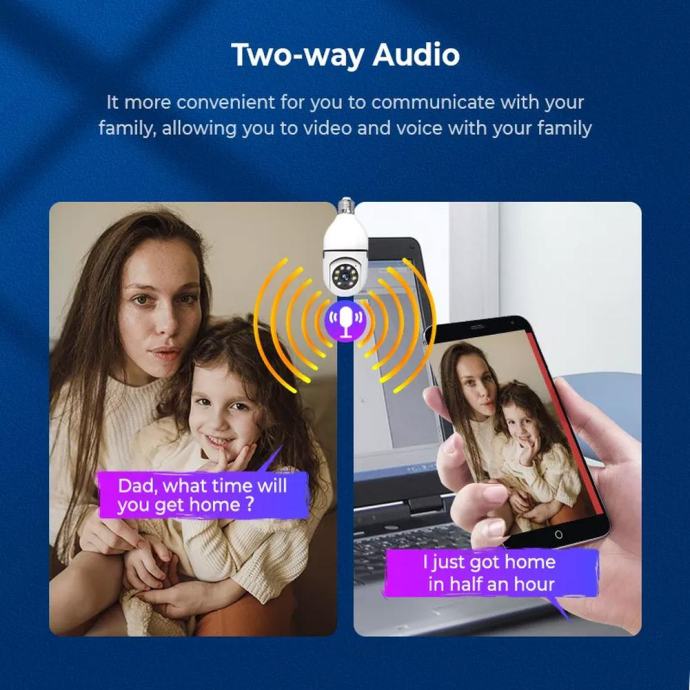 Zahvaljujoč WiFi kameri v obliki žarnice boste zavarovali svoj dom kot še nikoli doslej. Zahvaljujoč najnovejši tehnologiji je bilo mogoče v majhno žarnico z navojem E27 (združljivo z večino svetilk) vgraditi optiko, ki snema sliko v kakovosti 2 Mpx. Napravo upravljamo z nivoja aplikacije , ki jo enostavno prenesete na svoj telefon. Odslej lahko tudi ob odhodu na dopust nadzirate dogajanje v vašem domu!