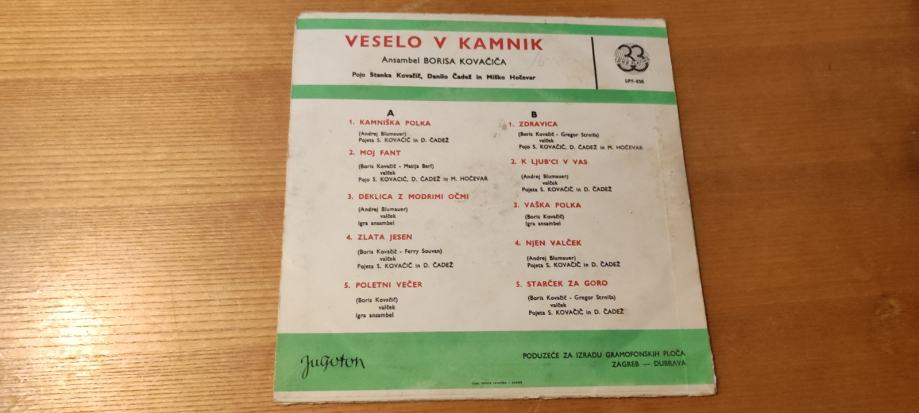 Prodam ohranjeno LP ploščo Ansambel Borisa Kovačiča – Veselo V Kamnik (Kamniška polka).