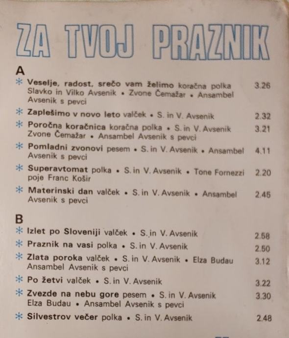 ANSAMBEL BRATOV AVSENIK, DVOJNI ALBUM, ZA TVOJ PRAZNIK,SREBRNE SMUČINE