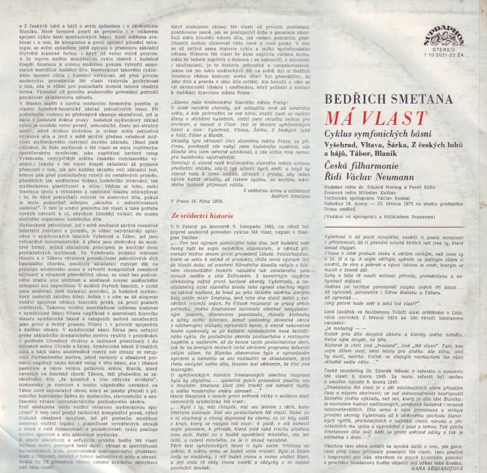 Bedřich Smetana Česká Filharmonie Václav Neumann – Má Vlast 2LP vinyl