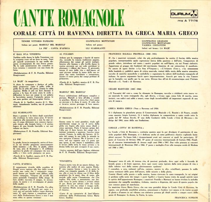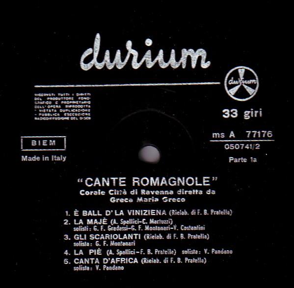 Corale Città Di Ravenna – Cante Romagnole Zbori LP vinil VG VG+