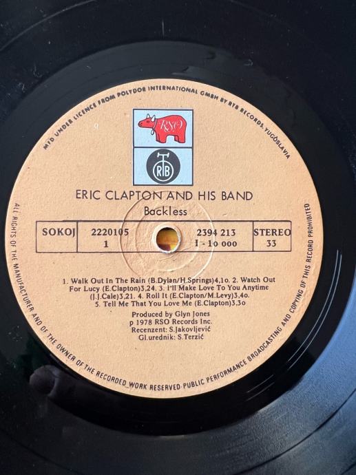 Prodam ploščo Eric Clapton - Backless, letnik 1978, RTB records Yugoslavia