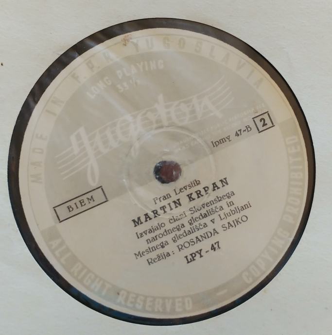 Plošča brez ovitka (je generičen). Je slabše ohranjena, je pa še zmeraj poslušljiva.
