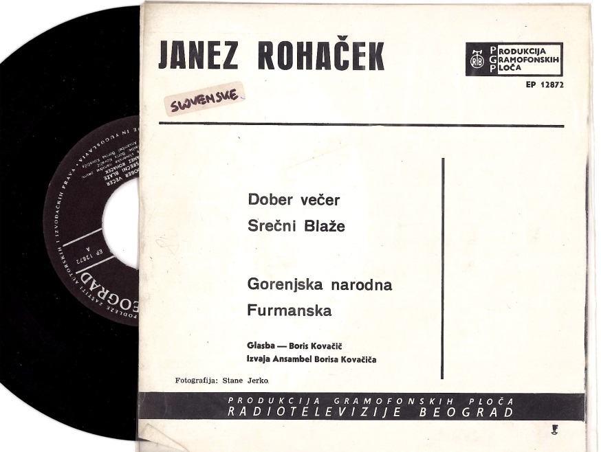 Kovačič B , Janez Rohaček – Dober Večer , Srečni Blaže , Gorenjska Narodna ,Furmanska PGP RTB – EP 12872 1966 DVE STA