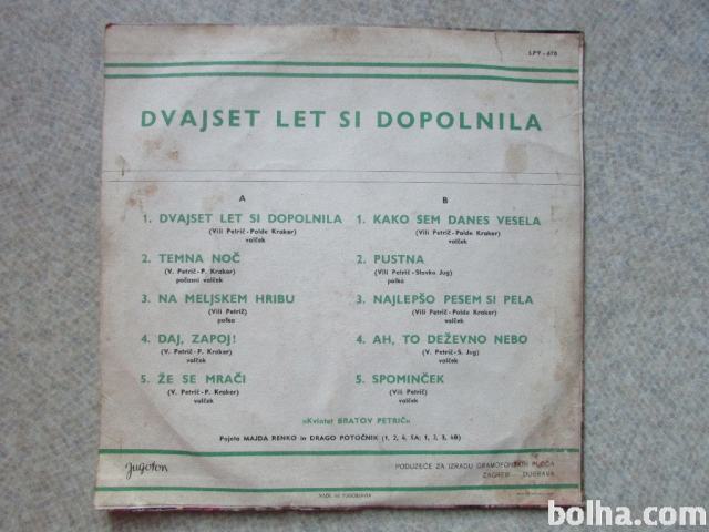 Gramofonska plošča, vinil, LP, Kvintet bratov Petrič