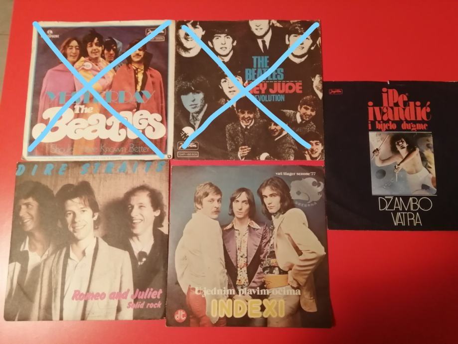 Prodam ohranjene male gramofonske plošče na sliki.INDEXI, DIRE STRAITS, IPE IVANDIĆ IN BIJELO DUGME.Posamezna po dogovoru