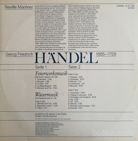 Händel - The Academy Of St. Martin-in-the-Fields Conductor Neville Marriner– Feuerwerksmusik / Wassermusik