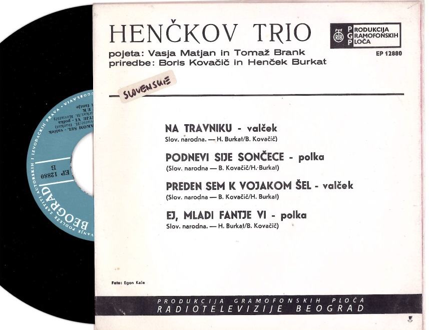 Trio Tineta Košmrlja – Na Vaškem Vrtu Jugoton – EPY-4228 1969