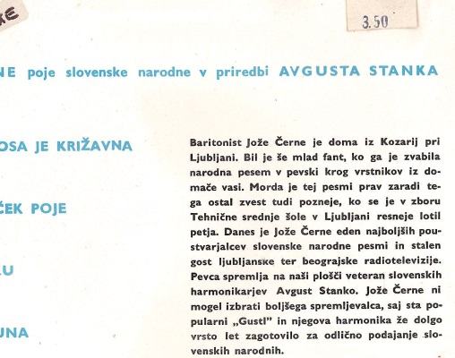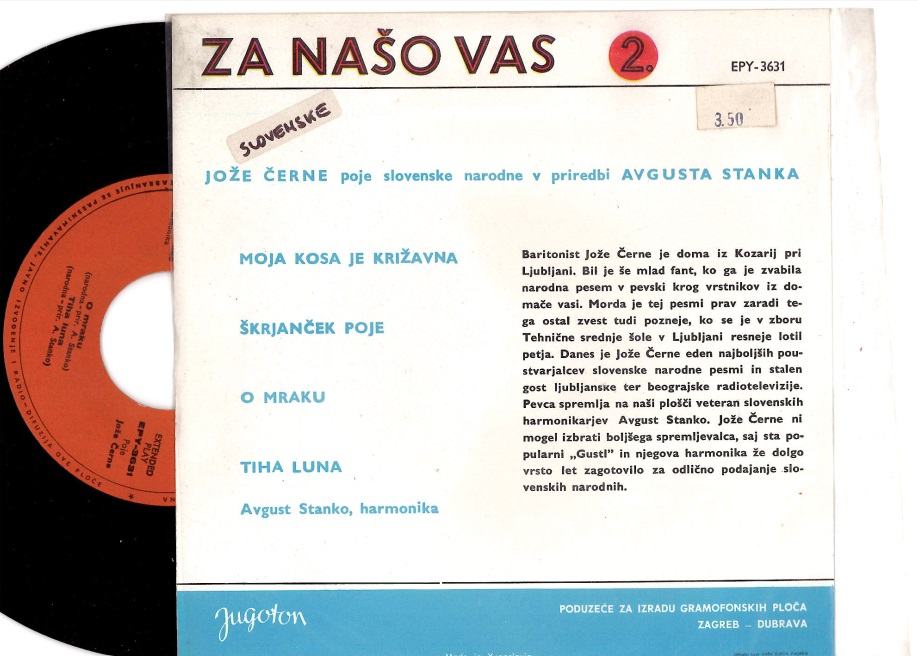 Jože Černe – Za Našo Vas 2. Jugoton – EPY-3631 1966