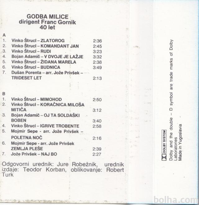 kaseta GODBA MILICE 40 let, JOŽE PRIVŠEK (MC 538)