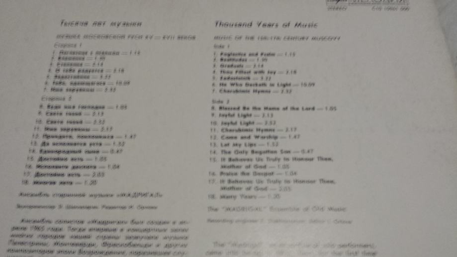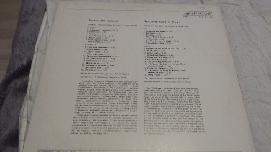 GRAMOFONSKA PLOŠČA MADRIGAL LP MADE IN USSR VINIL CENA 9,5 EUR