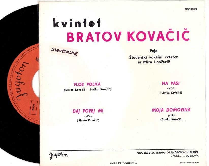 Kvintet Bratov Kovačič – Flos Polka, Jugoton – EPY-3843