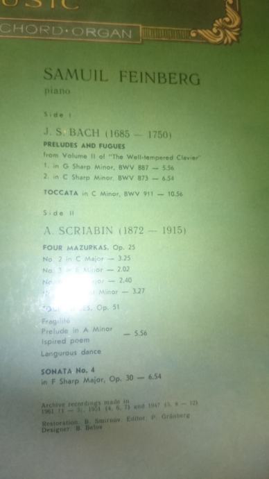 VINIL LP SAMUIL FEINBERG CENA 19 EUR TEL 070 604 547
