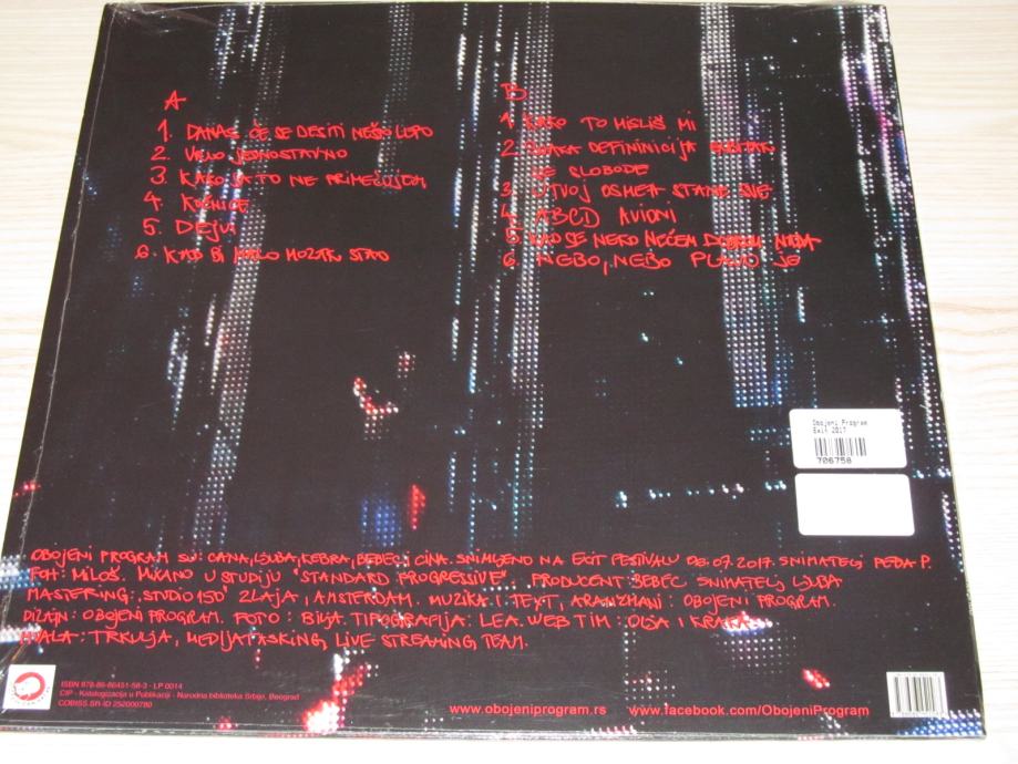 Prodam novo, še zapakirano ploščo skupine Obojeni Program - Exit 2017. Prodam za 22,00 € (plus morebitna poštnina).