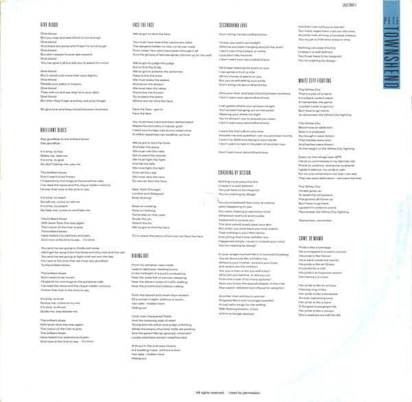 Pete Townshend (The WHO )– White City LP Vinil očuvanost VG+ VG+