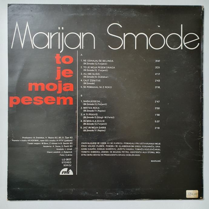 Prodam gramofonsko plosco LP Marjan Smode - To je moja pesem,