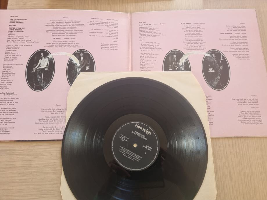 Originalna angleška izdaja na Souvereign Records. Zelo solidno ohranjen vinil z izjemo A3, ki ima polovico pesmi prasko in se sliši periodično prasketanje. Gatefold ovitek je na notranji strni malce natrgan (glej fotografijo)