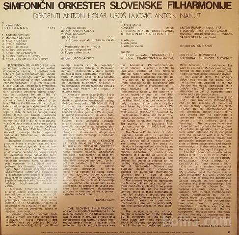 Simfonični orkester Slovenske filharmonije * - Karol Pahor , Paul Hindemith , Frank Martin (3) - Anton Kolar , Uroš Lajović , Anton Nanut - Istrijanka / Simfonija V B-duru Za Pihala, Trobila In Tolkala / Koncert Za Sedem Pihal V Trobilu, Pavke , Tolkala V Godalnem orkestru