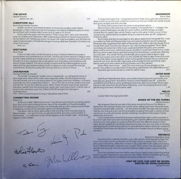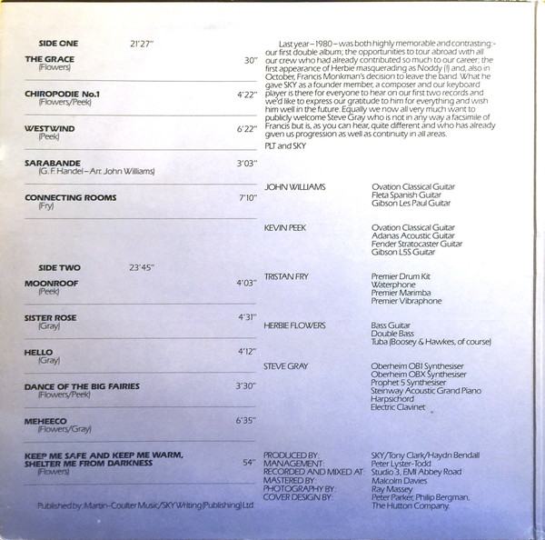 Sky were: John Williams, Kevin Peek, Tristan Fry, Herbie Flowers and Steve Gray.