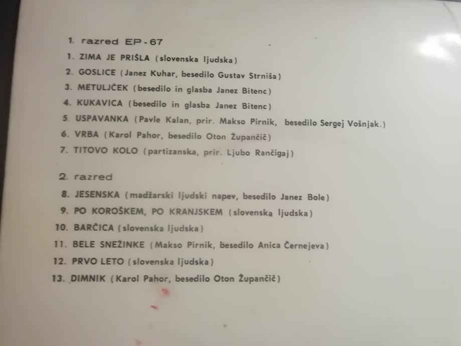 ŠOLSKE PESMICE ZA 1,2 IN 3 RAZRED 45 EP-67 IN 68 CENA 23 EUR