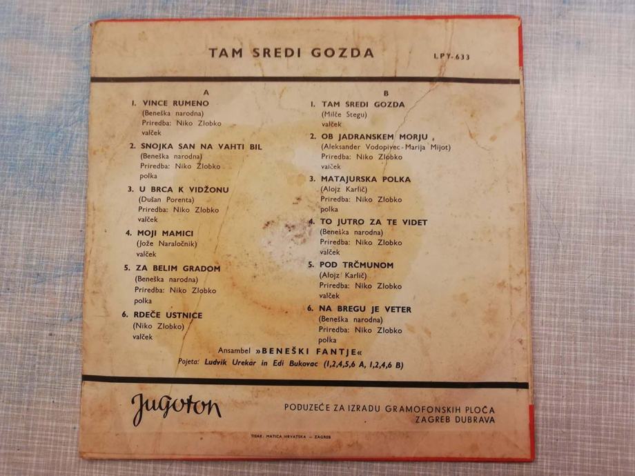Prodam ohranjeno ploščo TAM SREDI GOZDA - Ansambl Beneški Fantje.