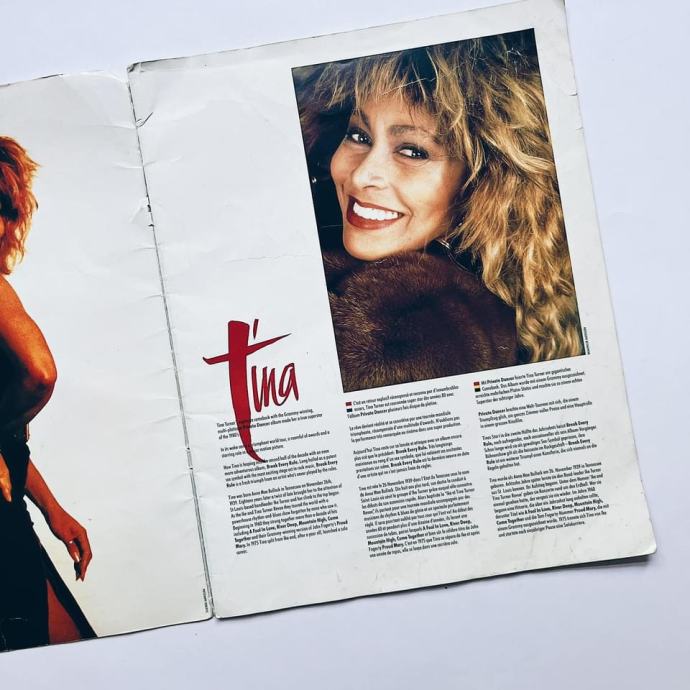Tina Turner Break Every Rule LP + World Tour Concert Program Book 1987-1988. Plošča v VG+ stanju, ovitek z madežom drugače lepo ohranjen z orginal notranjim ovitkom. Knjiga ima nekaj slik, opis benda, besedila in kar nekaj zanimivih podatkov. Žal slabše ohranjena. Vse skupaj 10€.