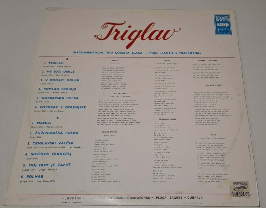 Ansambel Lojzeta Slaka – Glas Njegov V Spomin FLP 04-035 1974