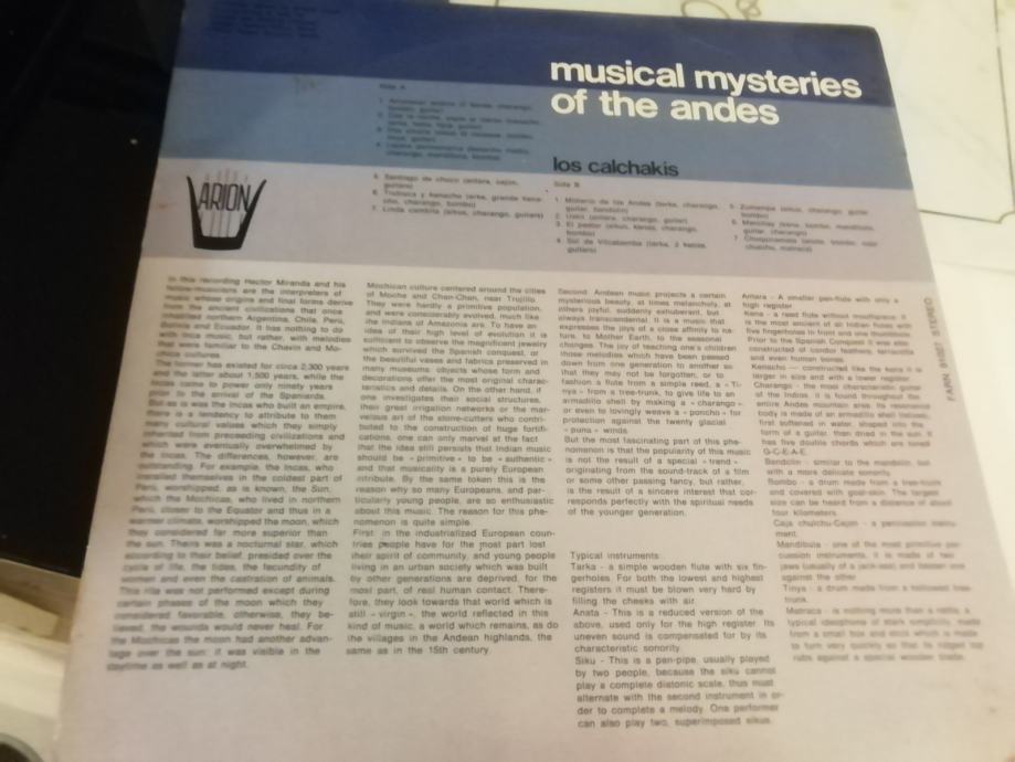 VINIL LP MUSICAL MYSTERIES OF THE ANDES CENA 15 EUR TEL 070 604 547