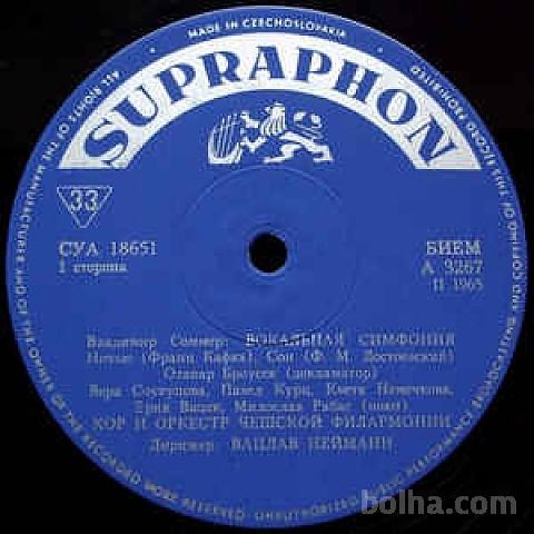 VLADIMIR SOMMER THE VOCAL SYMPHONY FOR MEzzosoPRANO, A SPEAKER, CHORUS AND LARGE ORCHESTRA voKALNi SYM FONIE PRO MEzzosoPAAN A RECITACI, saOR ORCHESTR JIRI JARO CH THE OLD MAN AND THE SEA SYMPHONIC POEM AFTER ERNEST HEMINGWAY STAREC A MORE SYMFONICKA BASEN PODLE ERNESTA HEMINGwAYE