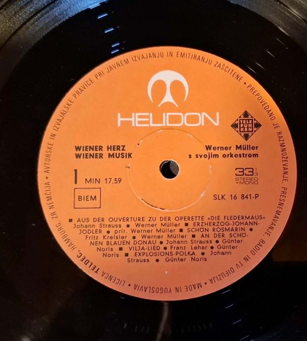 Werner Müller S Svojim Orkestrom – Wiener Herz, Wiener Musik Helidon – SLK 16 841-P 1970